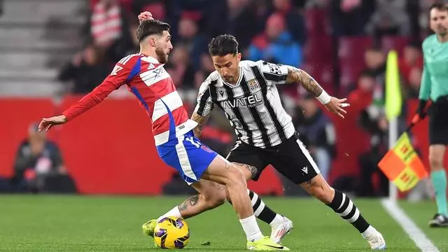 Ríos Reina, en una acción del encuentro en Los Cármenes / Prensa FC Cartagena