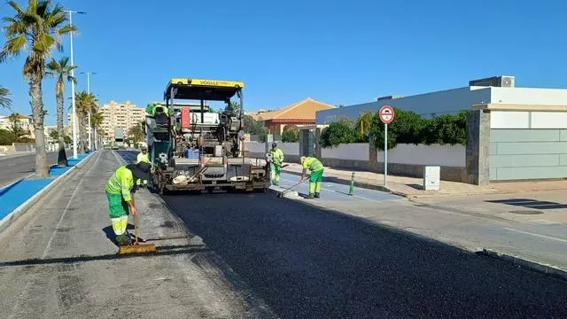 Reasfaltado de una calle de La Manga. / Ayto. San Javier