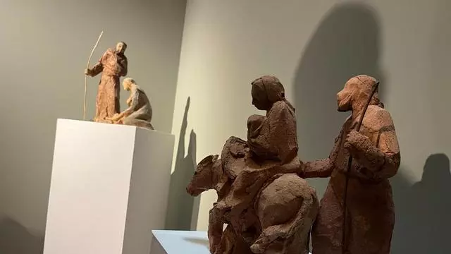 "En qué casa de murciano, en estas fechas, no hay un belén", bromeó el artista, y explicó que 'Figuras para un belén' refleja las tres escenas bíblicas que suponen el 'kit de iniciación' para una de las tradiciones navideñas más arraigadas: el nacimiento de Jesús en el pesebre, la llegada de los tres Reyes Magos y la huida a Egipto.