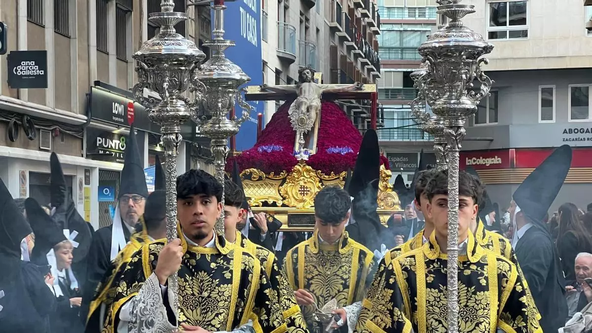El Viernes Santo de Murcia es más que la algarabía morada. Por la tarde, toca ir de funeral. Las cofradías que parten de San Bartolomé (dos de ellas, una detrás de otra) y San Esteban (aunque su iglesia sea San Miguel) siembran, en la tarde del mismo día, dolor con sobriedad. No en vano, se trata de un entierro. A Jesús lo han matado.